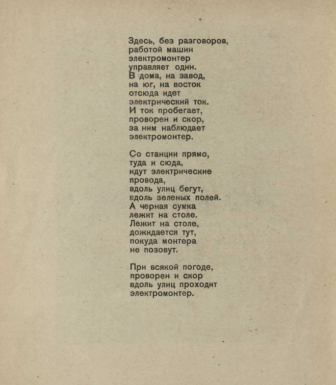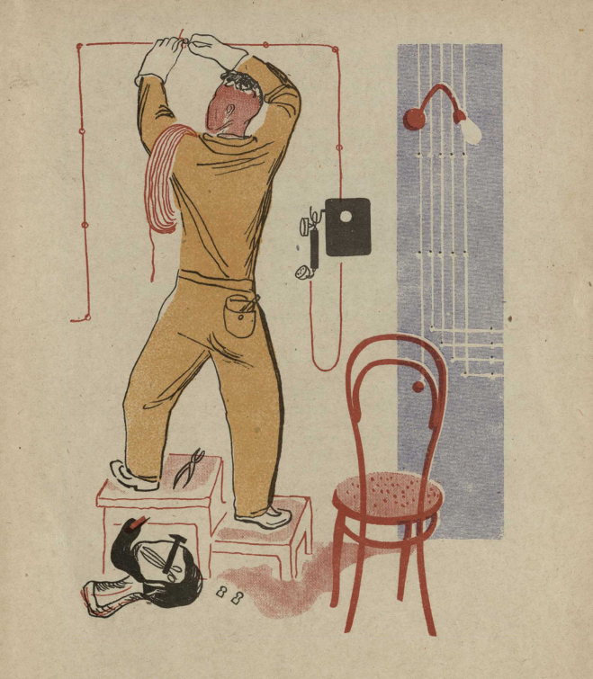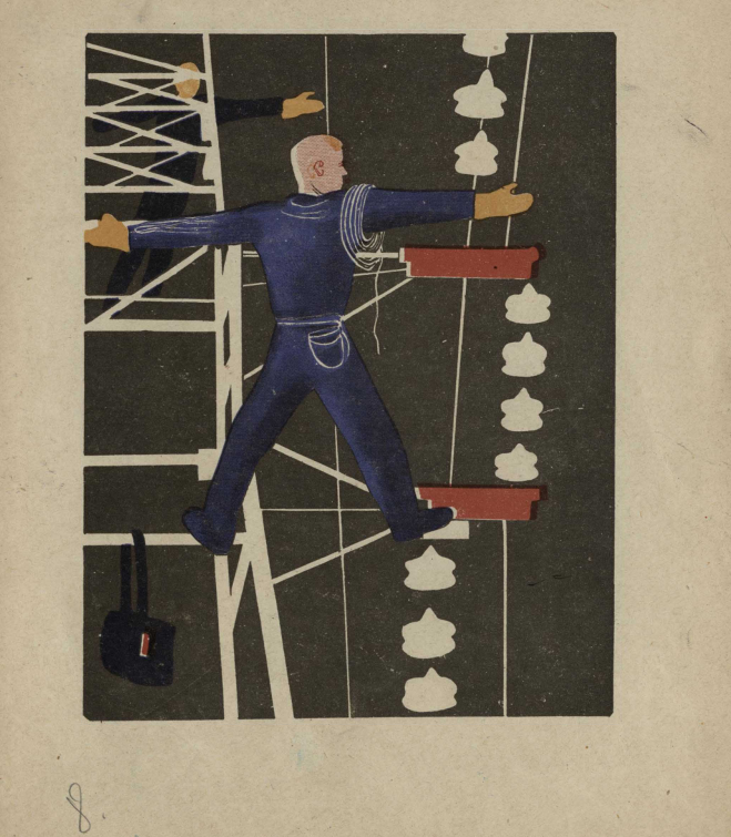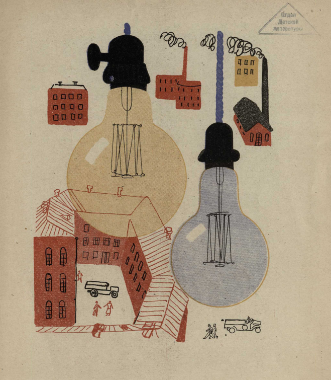 Это типичная советская производственная литература для детей 1920–30-х годов: пропаганда рабочих профессий, прославление технического прогресса и электрификации страны (в духе плана ГОЭЛРО).