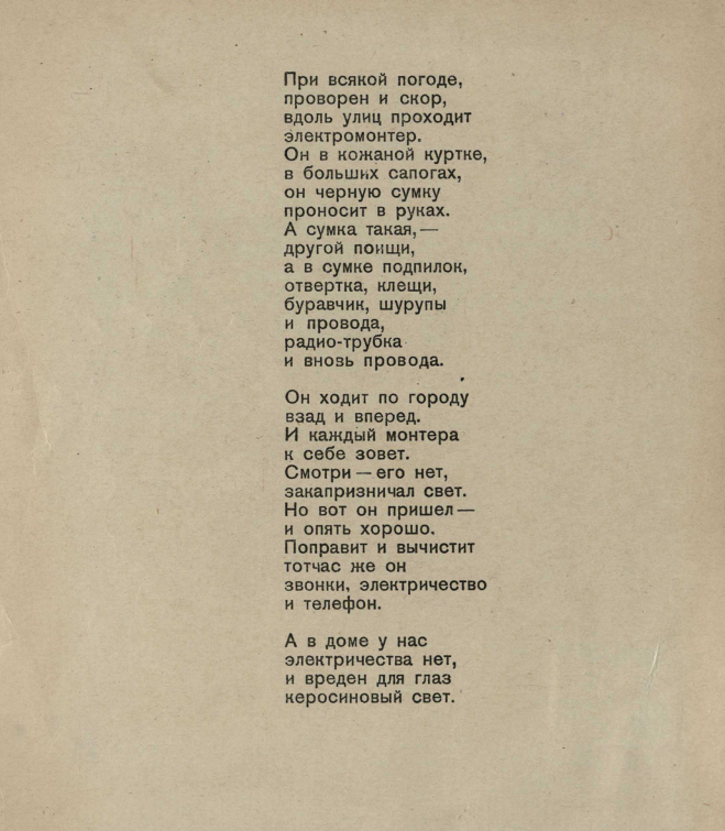 Перед вами - редкая советская детская книжка-стихотворение «Электромонтер» 1930 года издания.