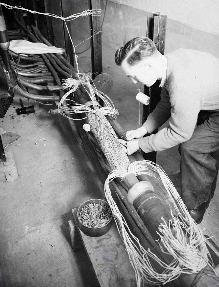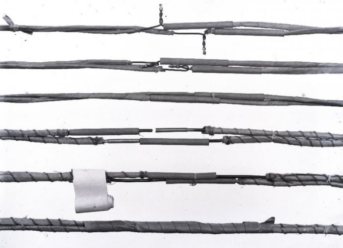 Для ремонта повреждений применялись импровизированные методы: обмотка жил джутовой бечевкой, пропитанной битумом или маслом, и наложение свинцовой ленты по спирали для герметизации. Эти материалы обеспечивали базовую изоляцию, но были уязвимы к механическим повреждениям и влаге — типичный ремонт требовал полной замены участка, что занимало дни и вызывало простои сетей.