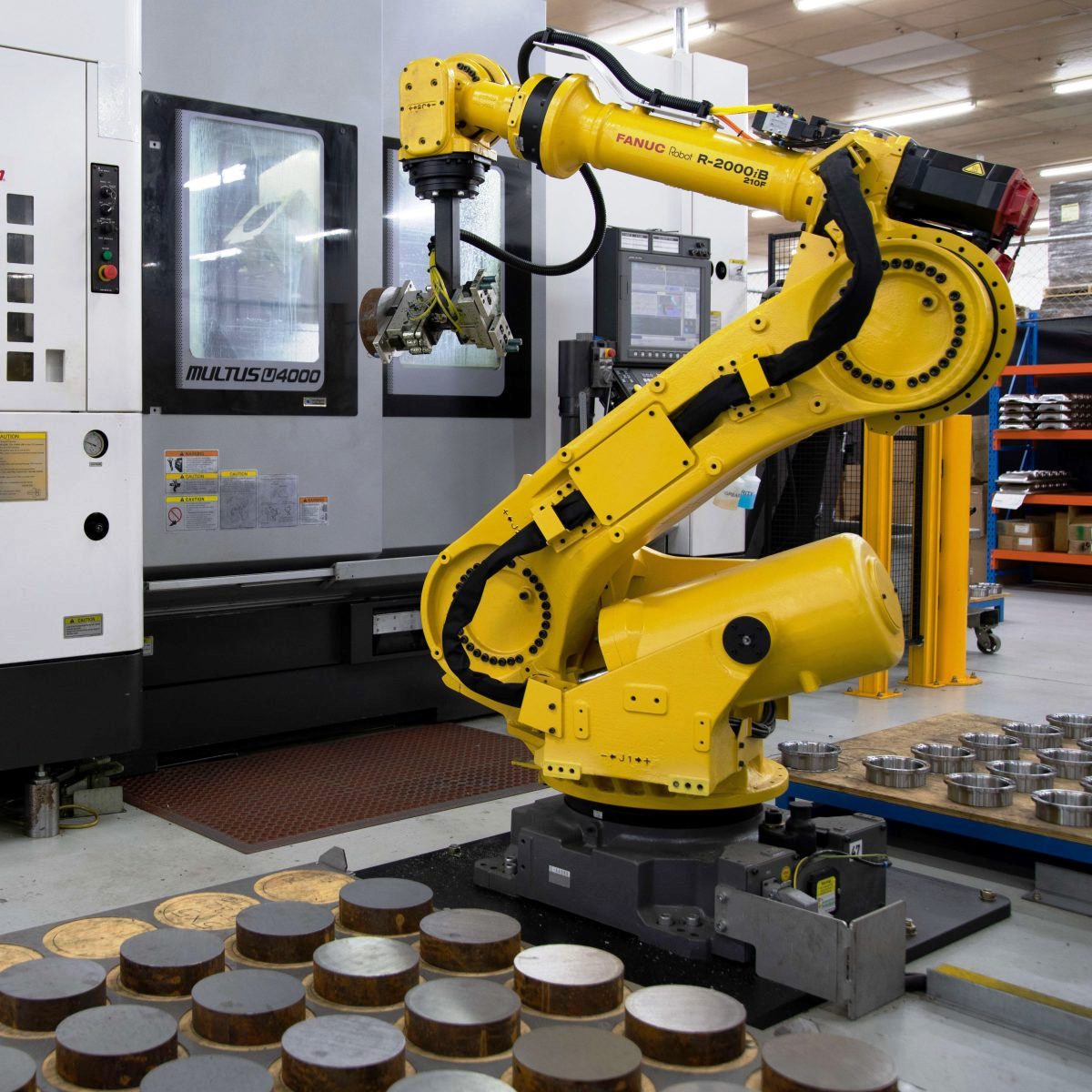 Не менее важна система управления. Контроллер робота, программируемый логический контроллер (ПЛК) и интерфейсы связи со станком с ЧПУ - Profinet, Modbus, дискретные входы-выходы или M-коды - формируют «нервную систему» всей ячейки. Именно через эти каналы станок сообщает роботу о своей готовности принять или отдать деталь, а робот - подтверждает завершение загрузки.