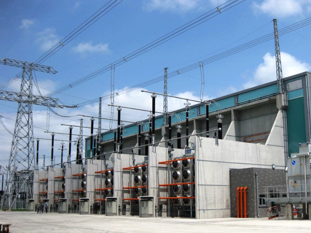 Инверторная станция в Фэнсяне, пригороде Шанхая, выполняет обратное преобразование в переменный ток 500 кВ для питания столичной энергосистемы. Каждая станция включает трансформаторы суммарной мощностью 7200 МВА и многочисленные фильтрующие и компенсирующие устройства.