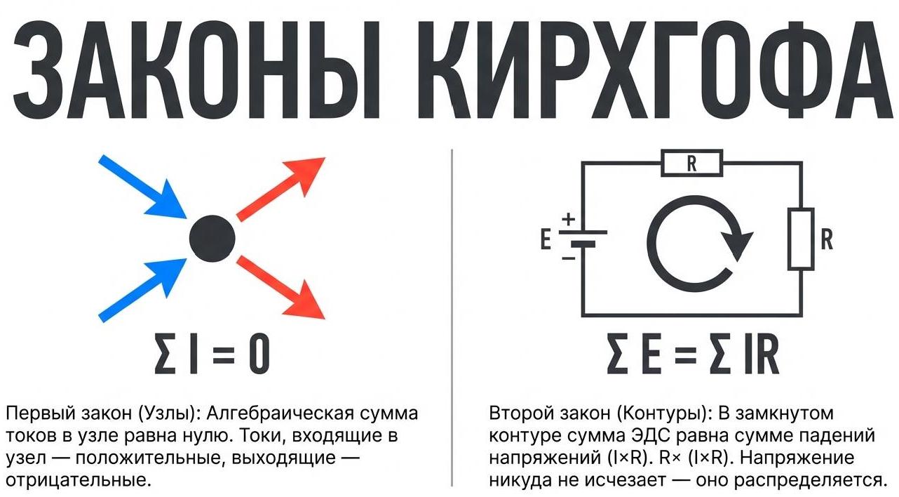 В электротехнике существует множество формул, определений и частных правил, но в основе любой схемы всегда лежит ограниченный набор фундаментальных законов. Именно они описывают связи между током, напряжением, сопротивлением, мощностью и энергией, а значит позволяют не просто «подбирать» решения, а осознанно рассчитывать и проектировать электрические цепи.