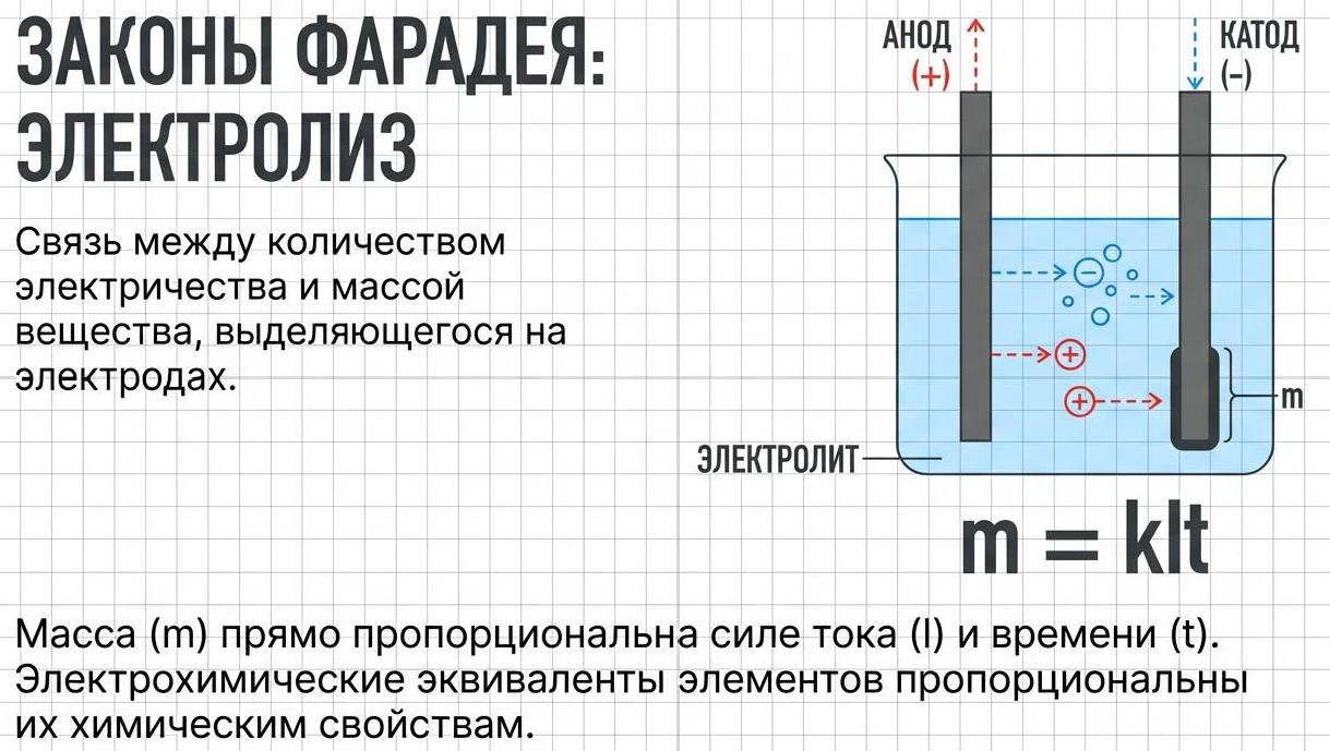 Устанавливают взаимосвязь между количеством электричества, проходящего через электропроводящий раствор (электролит), и количеством вещества, выделяющегося на электродах.
