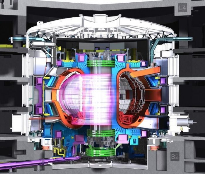 ITER (International Thermonuclear Experimental Reactor) — крупнейший токамак в строительстве во Франции, совместный проект 35 стран с бюджетом более 20 миллиардов долларов. Большой радиус 6,2 метра, малый радиус 2.0 метра, объем плазмы 830 кубических метров, тороидальное поле 5,3 Тесла, плазменный ток 15 миллионов ампер. Целевые параметры — температура плазмы 150 миллионов К, термоядерная мощность 500 мегаватт при мощности нагрева 50 мегаватт, коэффициент усиления мощности 10.
